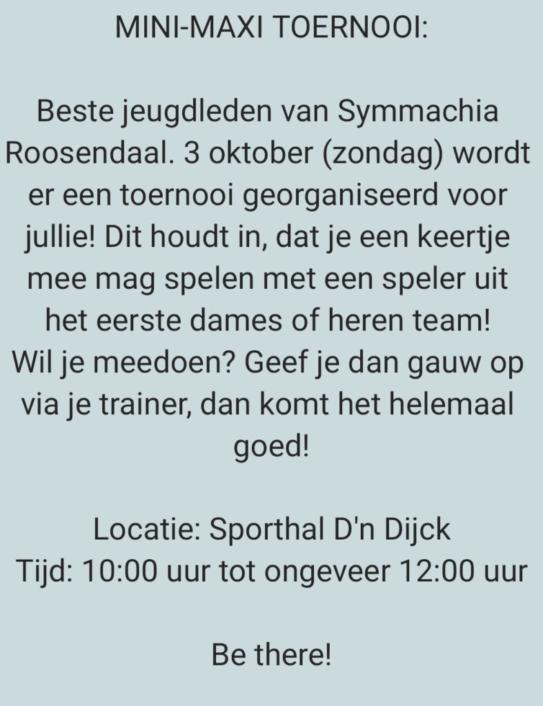 Wedstrijdprogramma Teams Symmachia Roosendaal