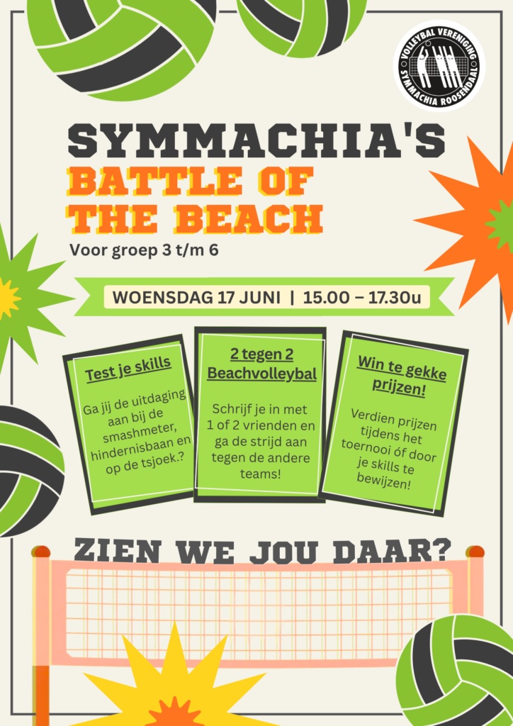 Voor vragen kun je contact opnemen met beachvolleybal@symmachiaroosendaal.nl. We zien jullie op 17 juni, tot dan!
